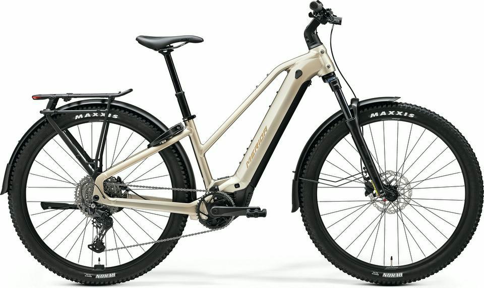 Details: Marke: Merida Modell: 2025 Gewicht: ca.28,7 kg Rahmen: eFLOAT CC L LITE II, Alu Motor: BOSCH Performance Line CX , 85 Nm, 250 W Akku: BOSCH PowerTube 800 Wh, inkl. Ladegerät Display: BOSCH Purion 200 Federgabel: SR Suntour X1-Boost, 120mm Federweg Schaltwerk: Shimano Cues U6000, 10-Gang Schalthebel: Shimano SL-MT500-L / Shimano Cues U6000-10 Kurbelsatz: FSA CK-220 wide E-Bike Forged Crankset, 38 Zähne Kassette: Shimano Cues LG400, 11-48 Zähne Bremsen: Shimano MT200 Felgen: MERIDA COMP TR II, 29 Zoll Naben: Shimano TC500 Reifen: Maxxis Rekon 29x2.4" Vorbau: MERIDA EXPERT TK III Lenker: Merida Expert Kette: Shimano LG500 Sattel: MERIDA EXPERT TK II Sattelstütze: MERIDA COMP TR IV Steuersatz: Acros ICR MERIDA INTEGRATED neck w/ Blocklock Pedale: VPE-891 Gepäckträger: MERIDA MIK HD Carrier with Spring clip & Spanninga rear light Schutzblech: Sunnywheel SW-FA311-70A/ SW-FA311-70E1 Seitenständer: Atranvelo ED-100-PC Beleuchtung: Scheinwerfer Lezyne Hecto StVZO E350+ Reverse/Spanninga Commuter Glow XE integrated in MERIDA MIK HD carrier zul. Gesamtgewicht: 150 kg